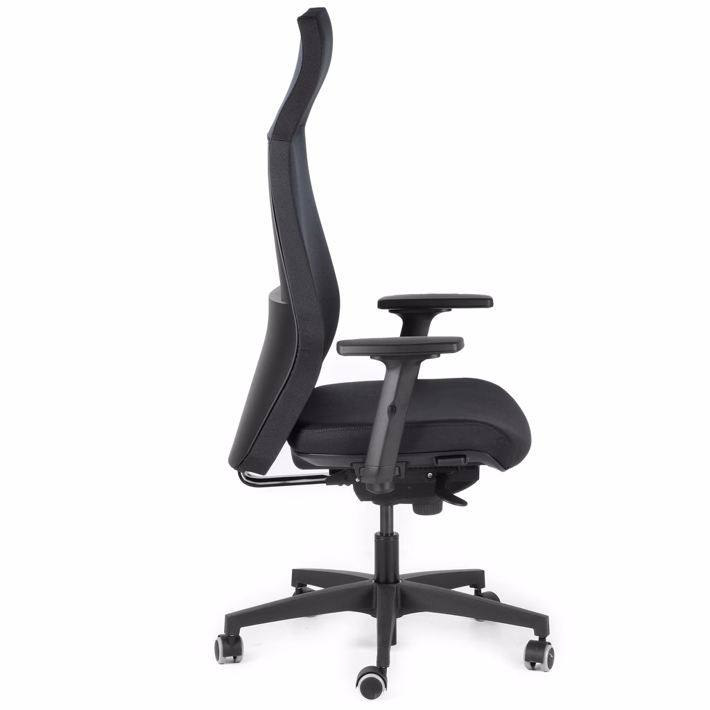 Schienale: ergonomico in polipropilene riciclato e riciclabile regolabile in altezza con meccanismo Up&Down (per la regolazione in altezza) con imbottitura in resina espansa e carter esterno. Sedile: interno in polipropilene con barre di rinforzo in acciaio, ricoperto di resina poliuretanica densità 40kg/m3 spessore 50mm. Con traslatore incorporato per la regolazione in profondità del sedile. Meccanismo: syncro 5 blocchi con regolazione in base al peso dell'utilizzatore con dispositivo anti ritorno. Braccioli: regolabili in altezza, larghezza e a scorrimento, in materiale plastico caricato con pad in PU. Elevazione seduta: gaslift classe 4. Base: in nylon rinforzato diametro 670mm a norma Ansi Bifma. Ruote: autofrenanti di tipo W per tutti i pavimenti. OMOLOGATA IN CLASSE 1IM. CERTIFICATA UNI-EN1335 IN CLASSE ''A''. Garanzia 5 anni. Rivestimento tessuto Berlin ad alta resistenza alla abrasione.