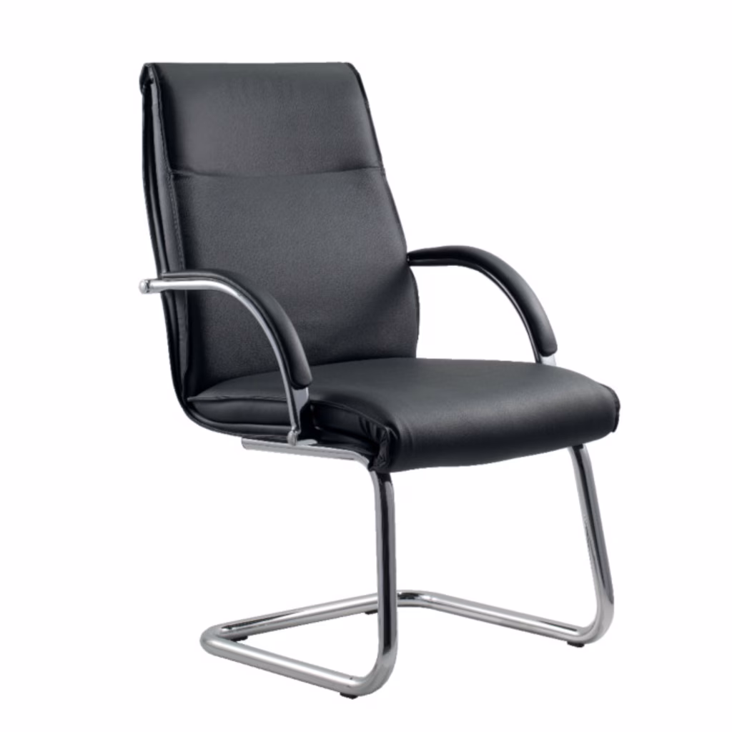 Versione visitatore schienale medio proposta su base a slitta con tubolare d'acciaio cromato - Rivestimento ecopelle - Garanzia 3 anni