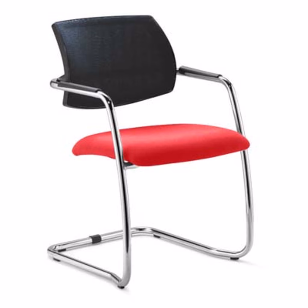Sedia visitatore ELICA SYSTEM su slitta schienale nero sedile rosoo