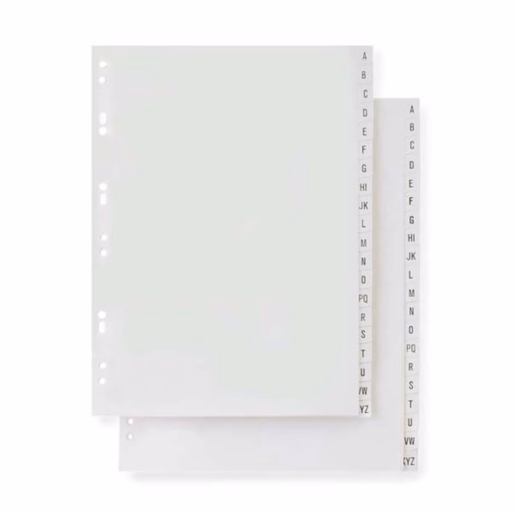 Separatori a foratura universale in polipropilene - 20 tasti alfabetici A-Z - disponibili in due dimensioni differenti - spessore super