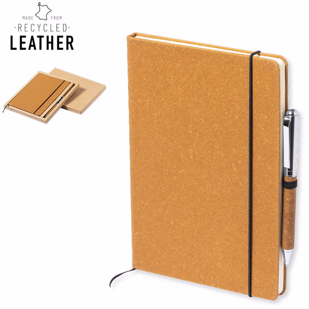 Set block notes 100FF A5 + penna Nauthax in pelle riciclata colore marrone