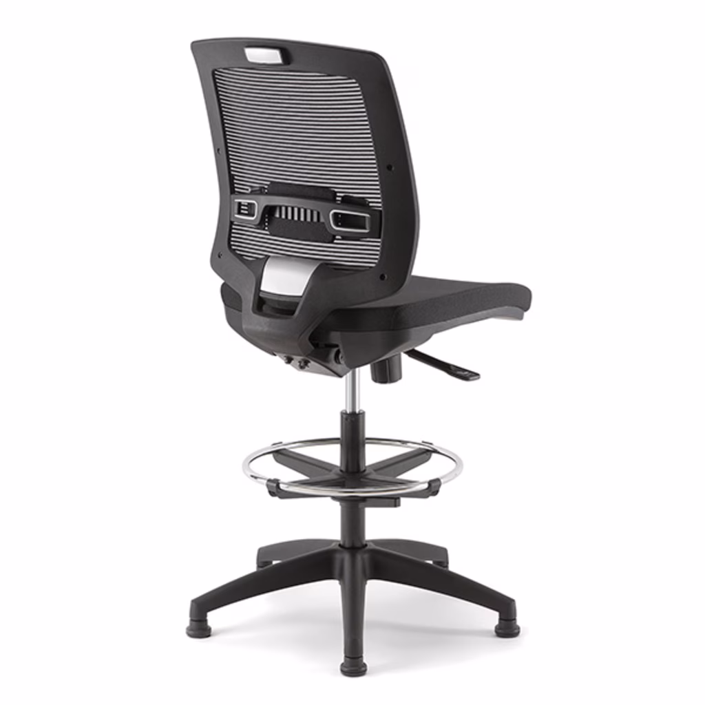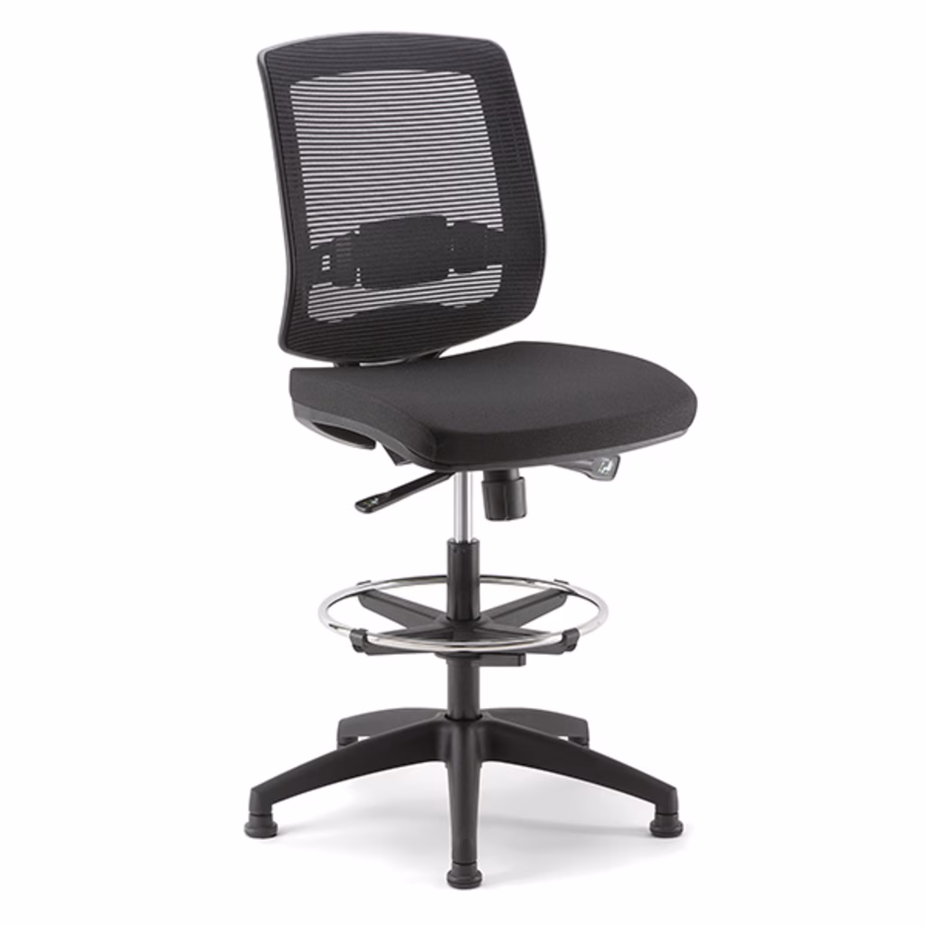 Schienale con struttura in poliammide e fibra di vetro, e rete autoportante - Sedile con interno sedile in multistrato di legnoe imbottitura in poliuretano espanso rivestito con tessuto ignifugo Teddy (test usura 85.000 cicli Martindale). - Supporto lombare regolabile in altezza - Meccanismo sincronizzato multi-blocco con elevazione a gas - Base in nylon nera su piedini - Anello poggiapiedi regolabile cromato - Garanzia 5 anni - Peso: 18,5 Kg