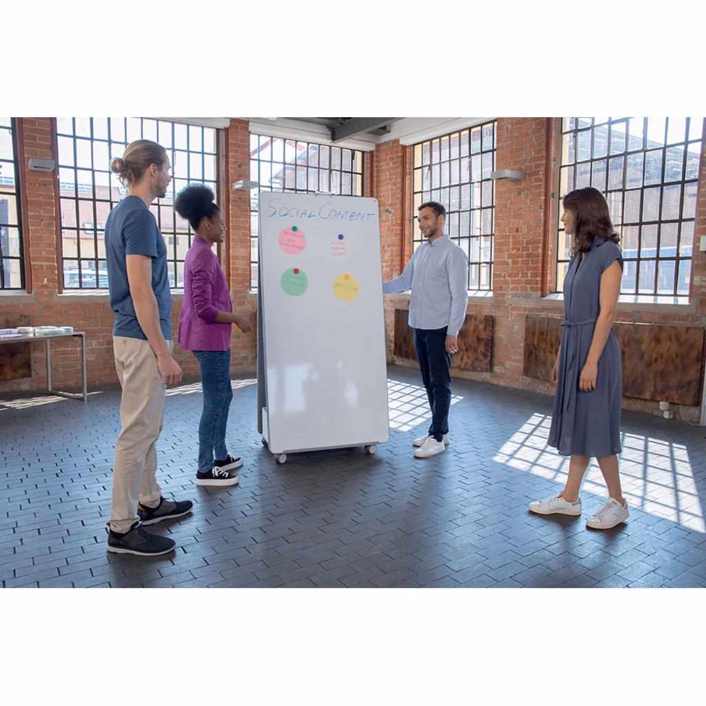 Il sistema di condivisione mobile Move & Meet offre la massima flessibilità all'interno di qualsiasi ambiente di lavoro ed è facilmente configurabile per soddisfare perfettamente ogni esigenza. Dotato di una base mobile e di 2 lavagne magnetiche bifacciali rimovibili, il sistema crea un'ampia area di scrittura e di visualizzazione per annotare progetti e idee. Grazie al suo design arrotondato, contemporaneo e innovativo, con un rivestimento antiscivolo, si adatta perfettamente a qualsiasi ambiente. Completo di 4 pennarelli per lavagna bianca, 1 panno in microfibra e 2 portapenne