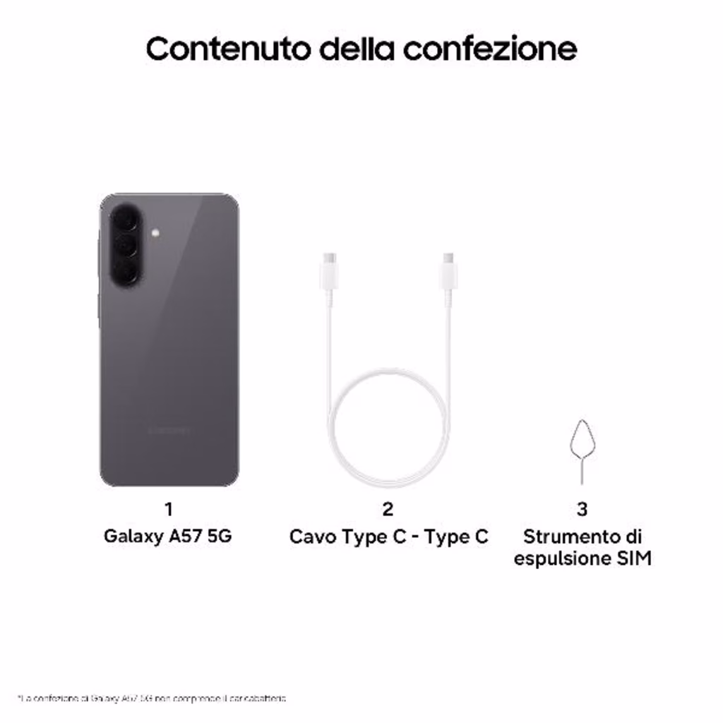 7_Galaxy A57 5G supporterà fino a 6 aggiornamenti del sistema operativo Android e fino a 6 anni di aggiornamenti della sicurezza (Security Maintenance Release), a partire dalla data di immissione sul mercato. La disponibilità e le tempistiche degli aggiornamenti del sistema operativo Android e degli aggiornamenti della sicurezza possono variare in base al modello del dispositivo e al mercato.