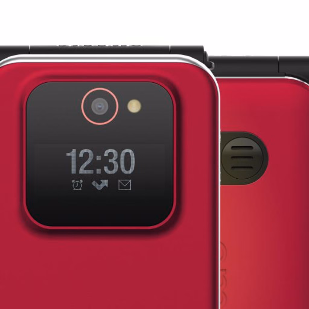 emporiaJOY è un telefono cellulare pieghevole semplificato con un robusto flip e un display esterno.