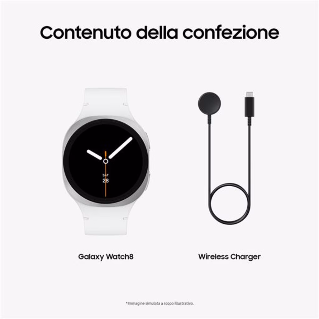 Samsung Galaxy Watch8 Galaxy Watch 8, Bluetooth, 40mmIl nuovo Galaxy Watch8 unisce innovazione e design resistente agli urti, per uno stile elegante e confortevole. Migliora la qualità del sonno e svegliati più riposato grazie al monitoraggio avanzato e alla creazione di una routine serale salutare. Con il coach personale, puoi correre al tuo ritmo e seguire programmi su misura, mentre il monitoraggio dell esercizio tiene traccia facilmente dei tuoi movimenti. Durante la notte, il dispositivo controlla la salute del cuore e analizza il tuo indice AGEs, fornendo preziose informazioni sull invecchiamento cellulare. È anche il primo smartwatch al mondo in grado di misurare i tuoi livelli di antiossidanti. A questo si aggiungono momenti di consapevolezza pensati per il benessere mentale. Tutto è integrato nella nuova One UI 8 Watch, più intuitiva e personalizzata che mai. Con Galaxy Watch, tecnologia e benessere si fondono in un unica esperienza.