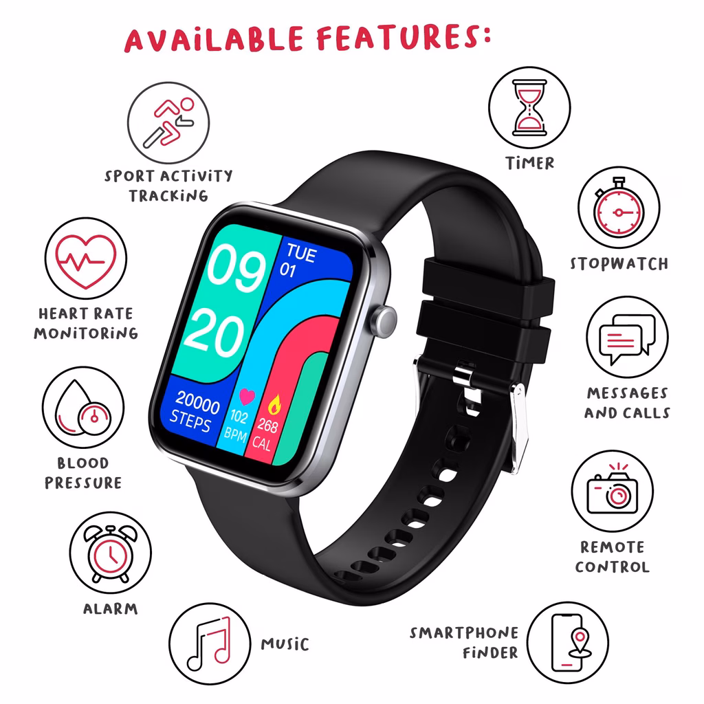 TRAINERWATCH è il nuovo smartwatch con un display da 1,69 full touch, che ti permette di rendere più semplici molte azioni quotidiane: monitora i tuoi allenamenti, il tuo stato di salute e visualizza chiamate e messaggi.