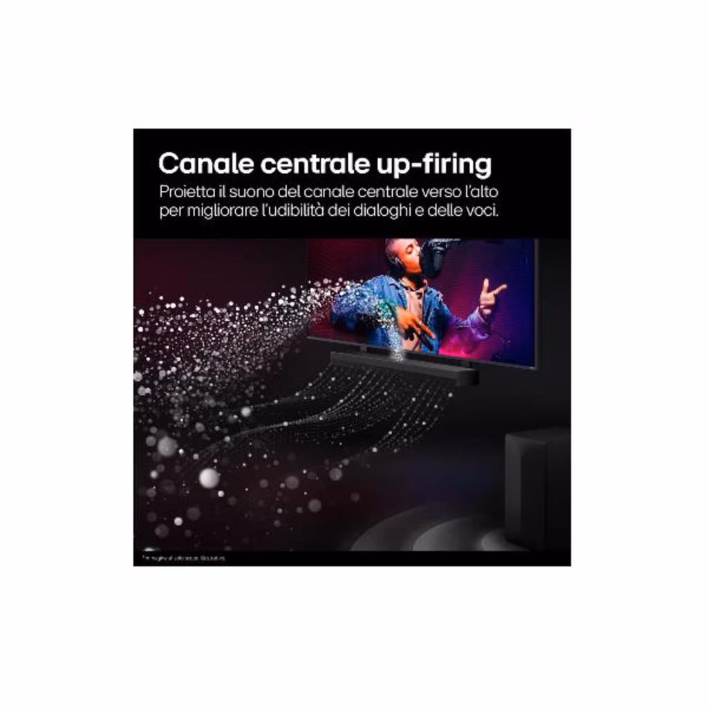 Oltre che frontalmente, la soundbar emette i suoni dedicati al canale centrale anche verso l'alto. In questo modo i dialoghi arriveranno alle tue orecchie in maniera più diretta.