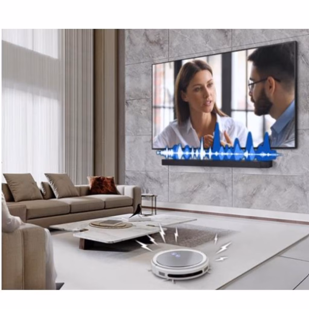 Un suono straordinario in perfetta sintonia con il tuo ambiente. La soundbar analizza l'ambiente e regola l'audio in base alle sue caratteristiche, ottimizzando anche i bassi, per ottenere un suono nitido e avvolgente.
