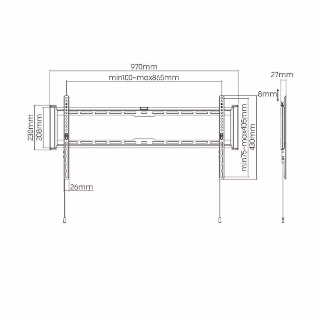 Staffa ultrasottile molto robusta per l installazione a parete di monitor fino a 75 kg / 90" anche touch.