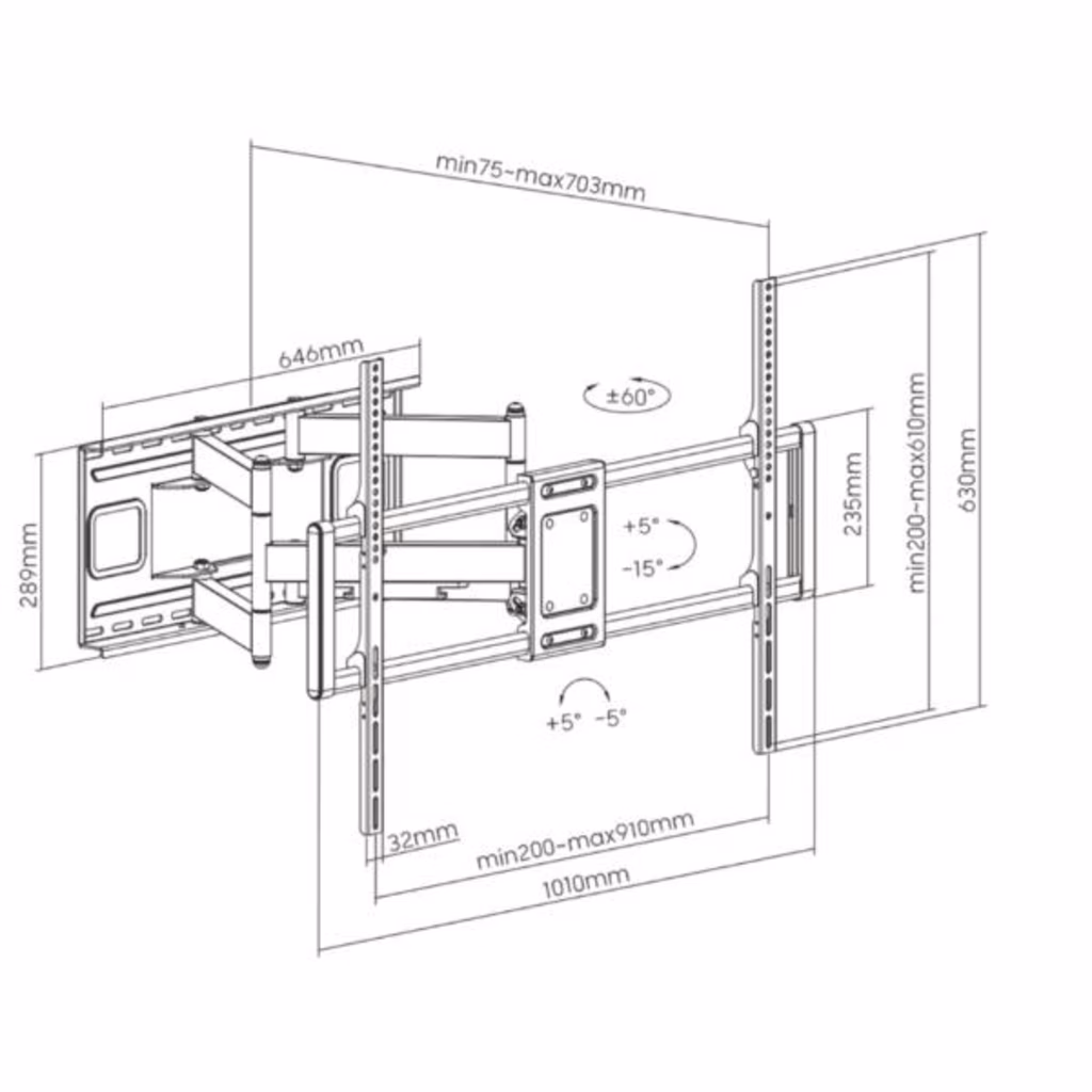 Screen Level: +5°~-5° (regolazione consentita post installazione)