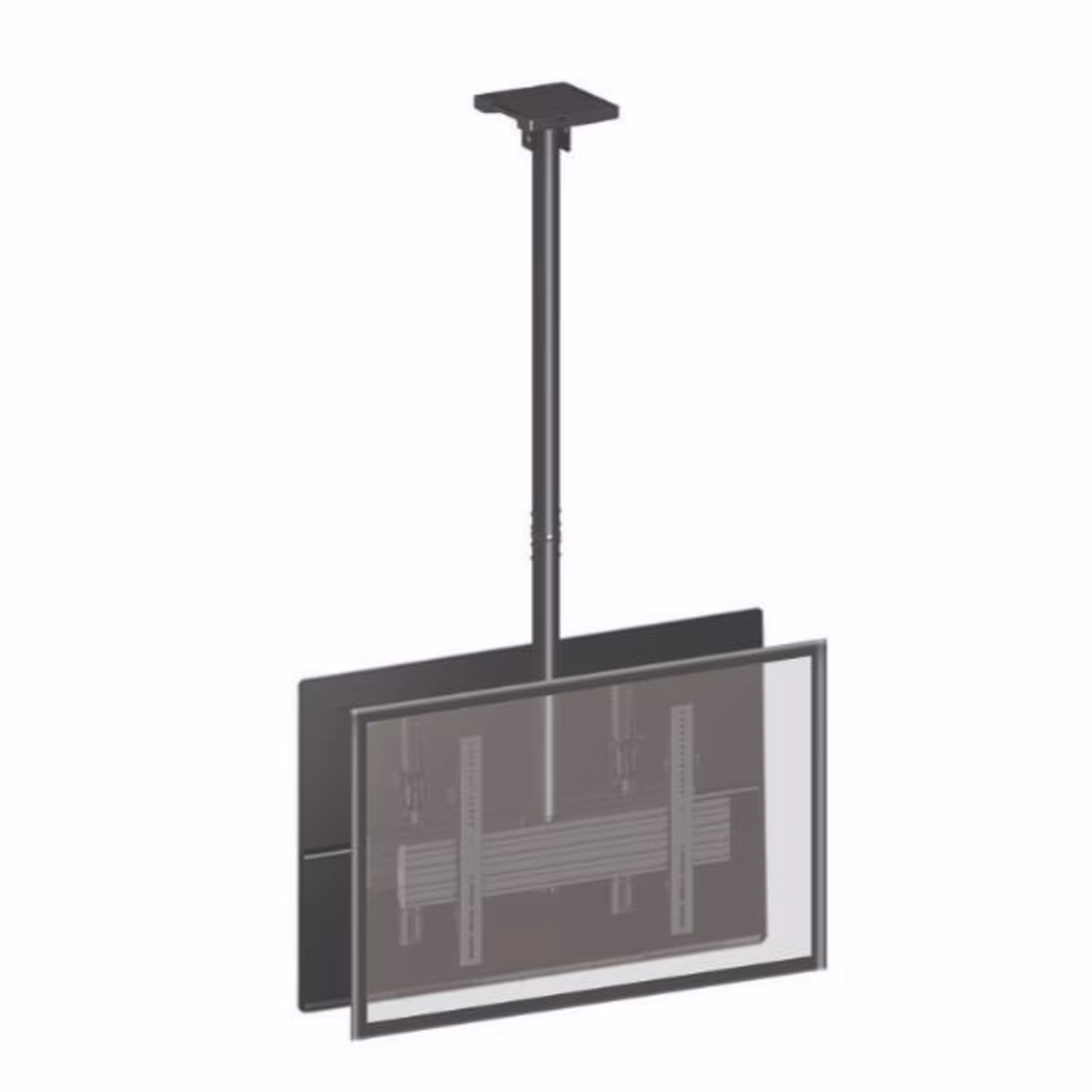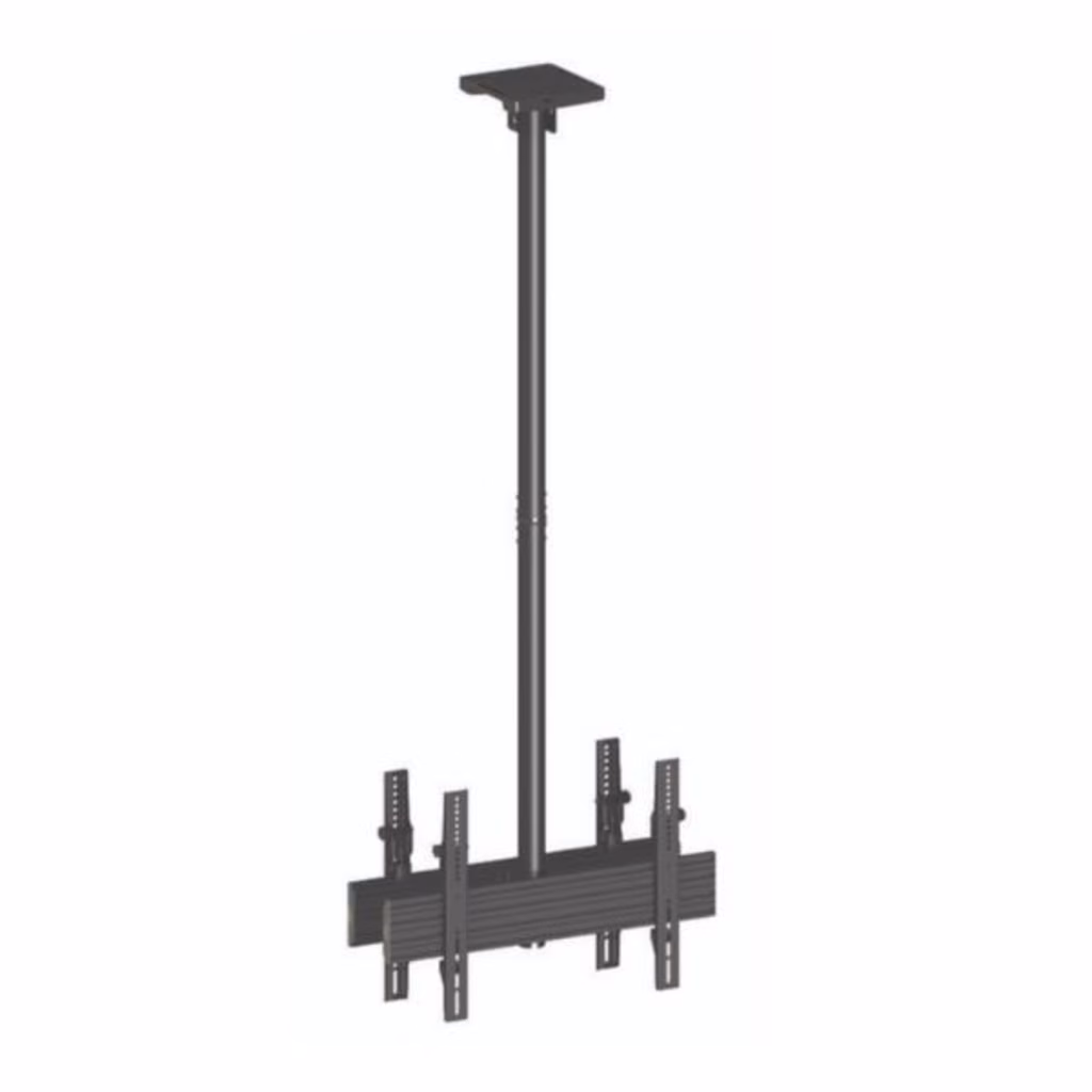 Staffa da soffitto in acciaio per display LCD, adatta per 2 monitor (1 per lato), regolabile, Vesa 600×400, dimensioni schermo 40 -75 , colore nero.