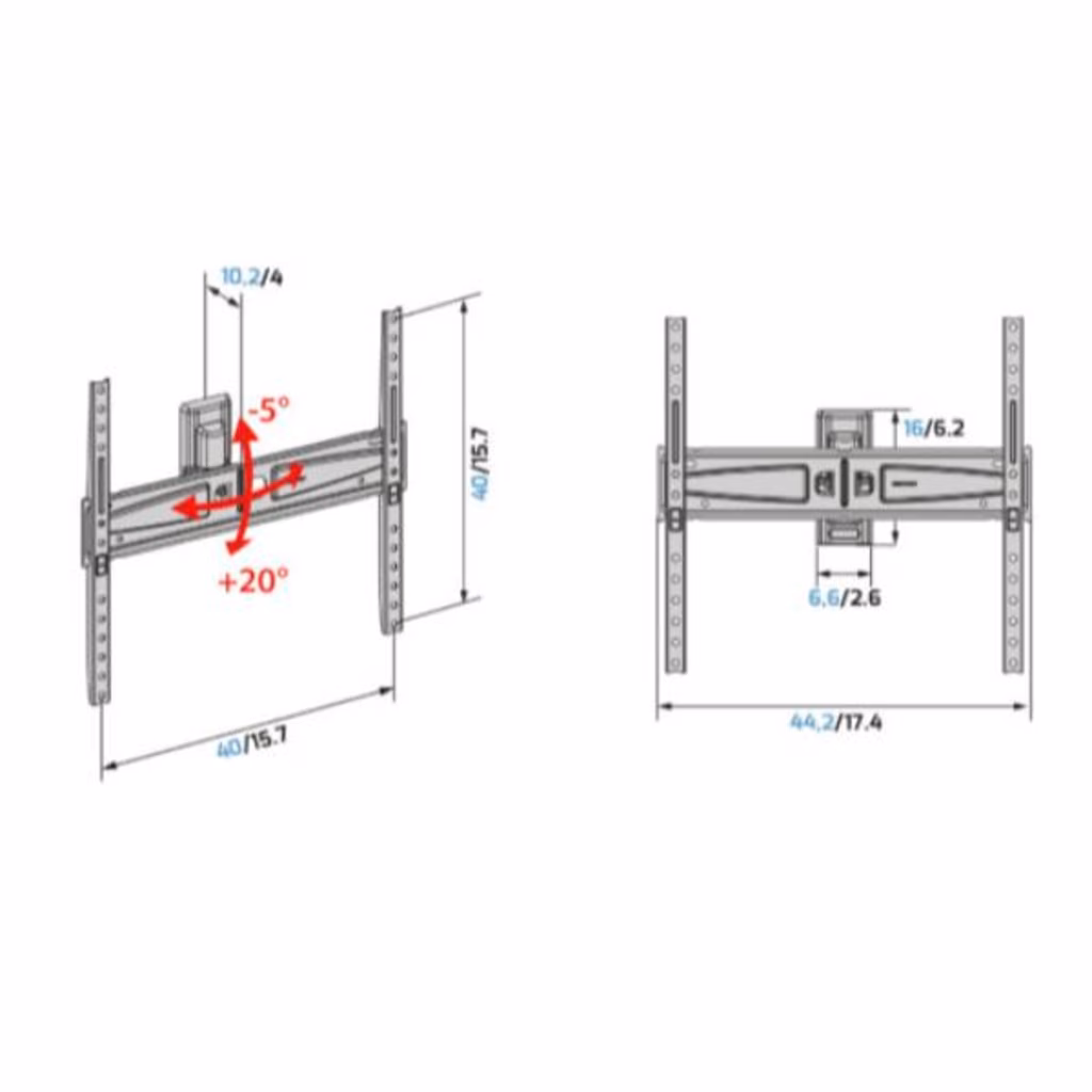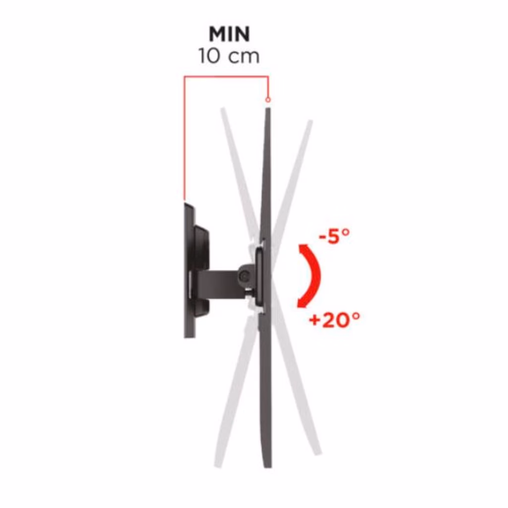 Flatstyle FTR400 è un supporto adatto a tutte le TV con foratura VESA 200-300-400 mm, da 40 a 75 pollici, con una portata massima di 45 kg e distanza da muro di minimo 10 cm.