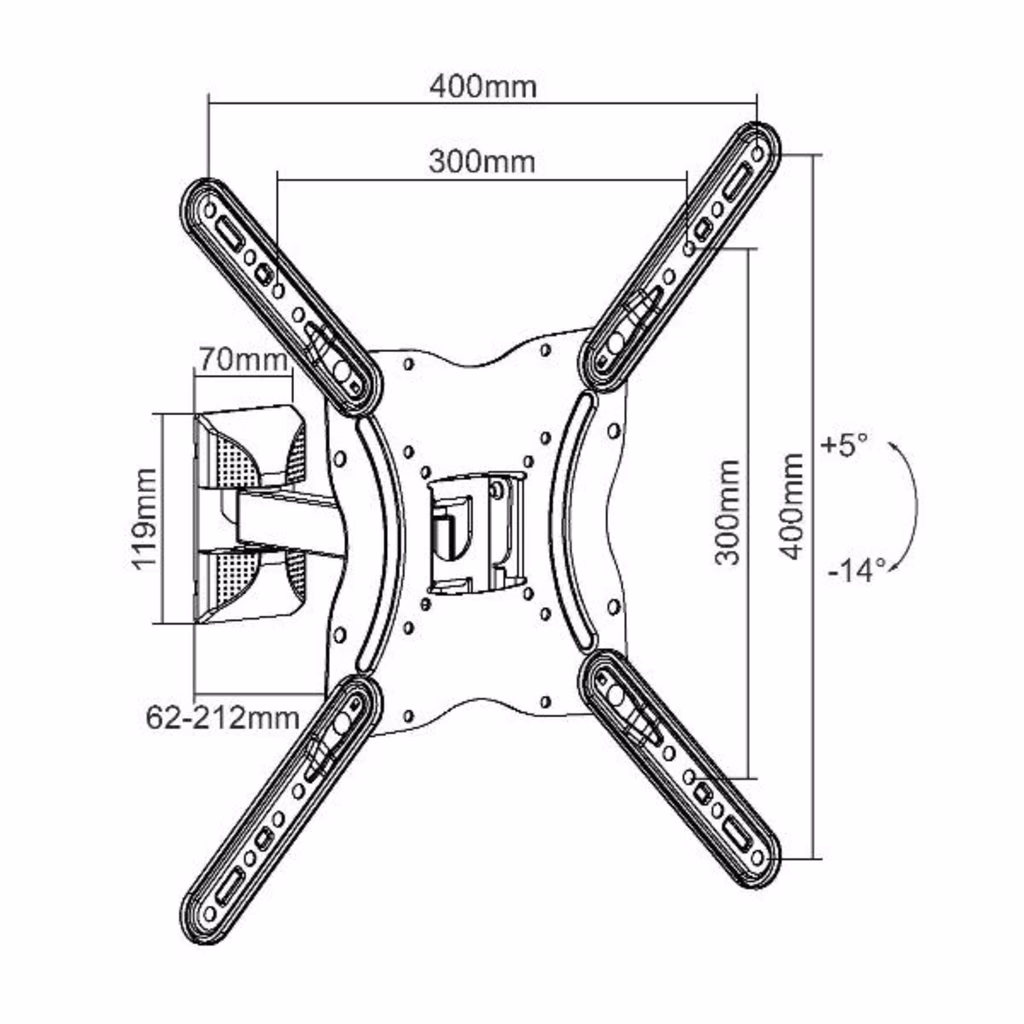 La staffa di montaggio a parete per equipaggiare TV è un prodotto compatto ma robusto che garantisce un'installazione affidabile della tua TV LCD / Plasma. Segui la guida grafica inclusa nella confezione, puoi installare la tua TV da solo con facilità. Il supporto da parete si adatta alla maggior parte dei materiali per pareti: mattoni, cemento e legno, rendendoti la scelta ideale per impostare i tuoi schermi.