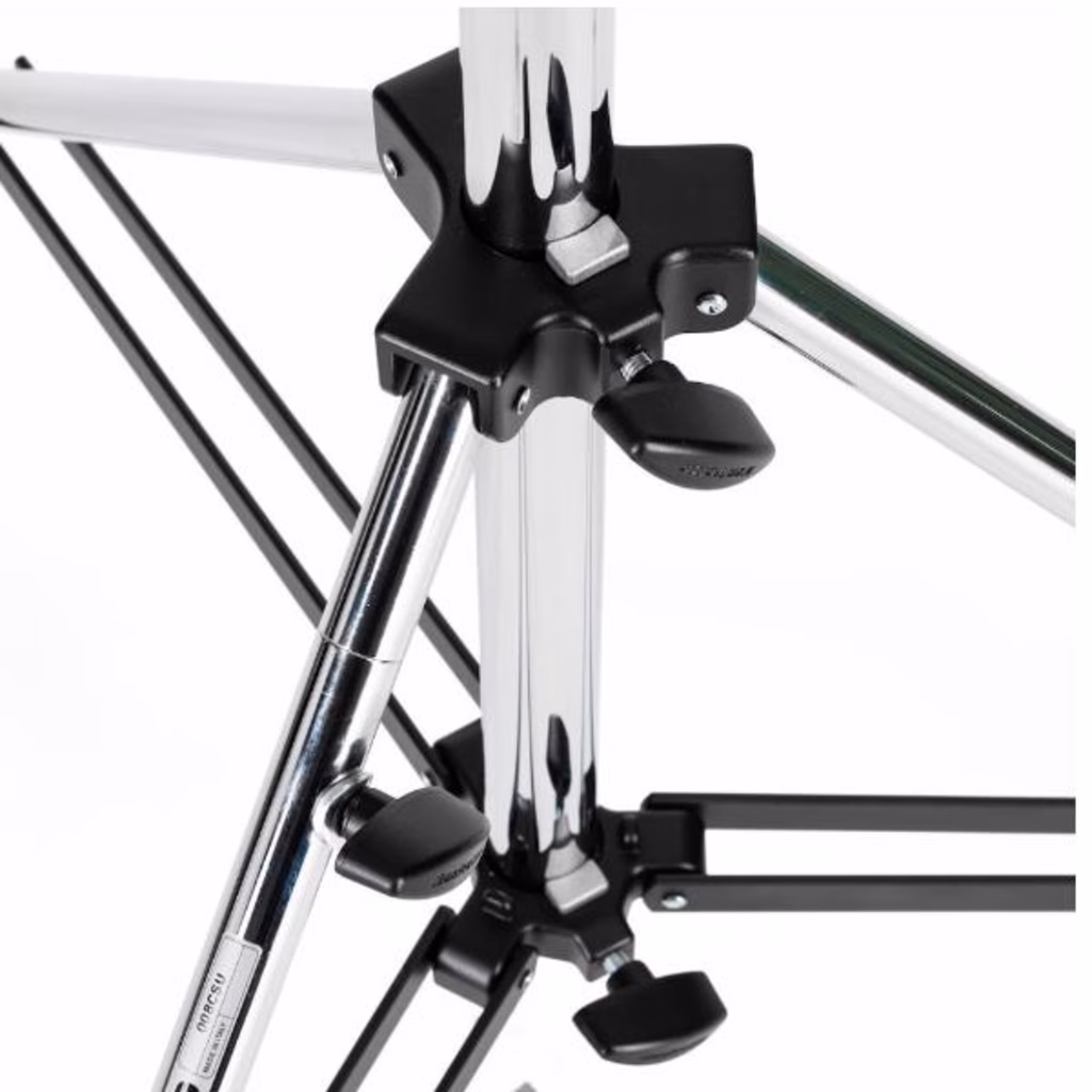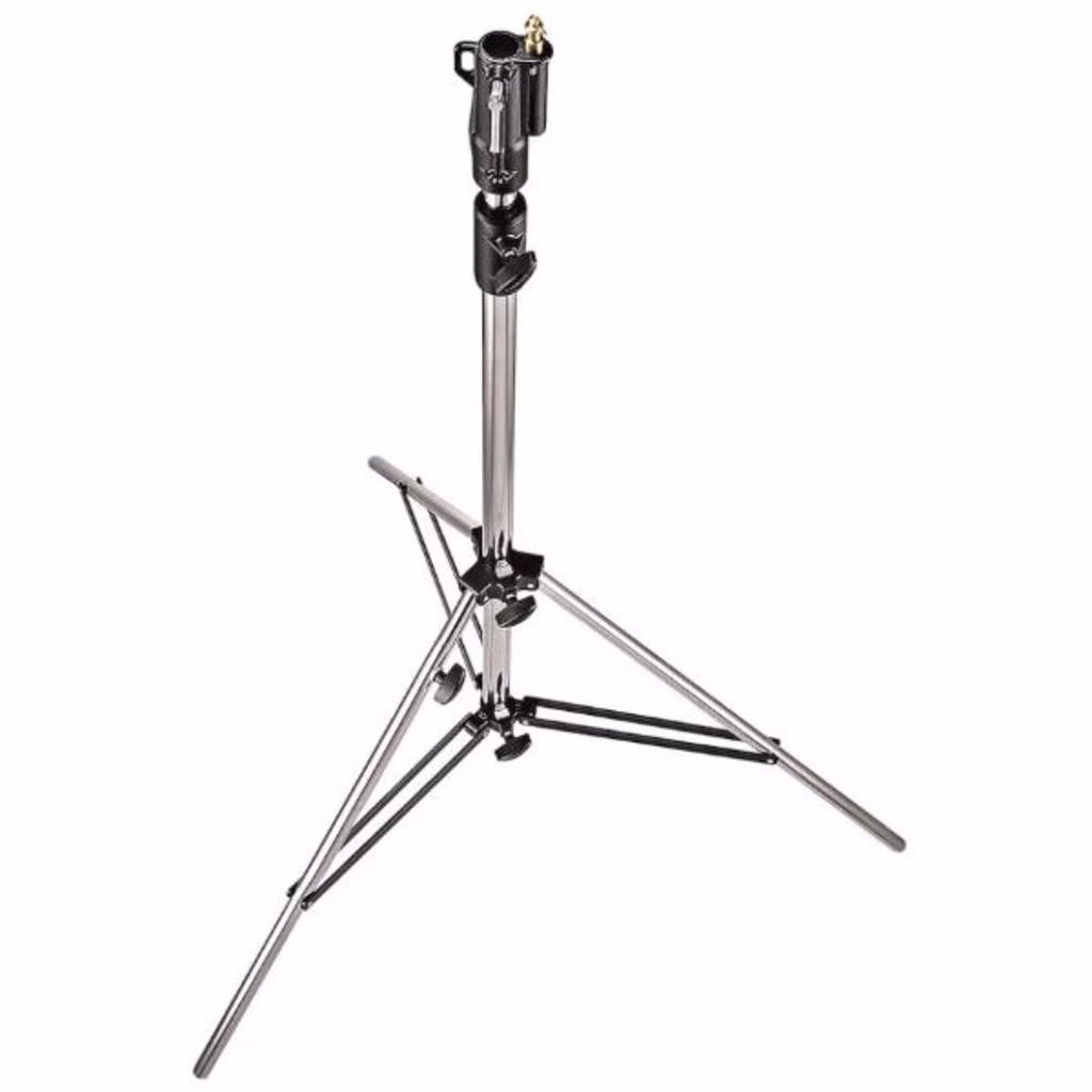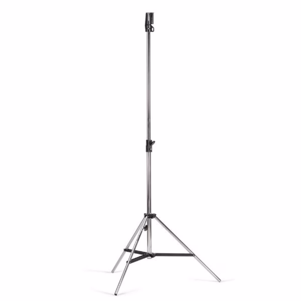 Stativo in acciaio cromato. Dotato di tre sezioni e due manicotti.