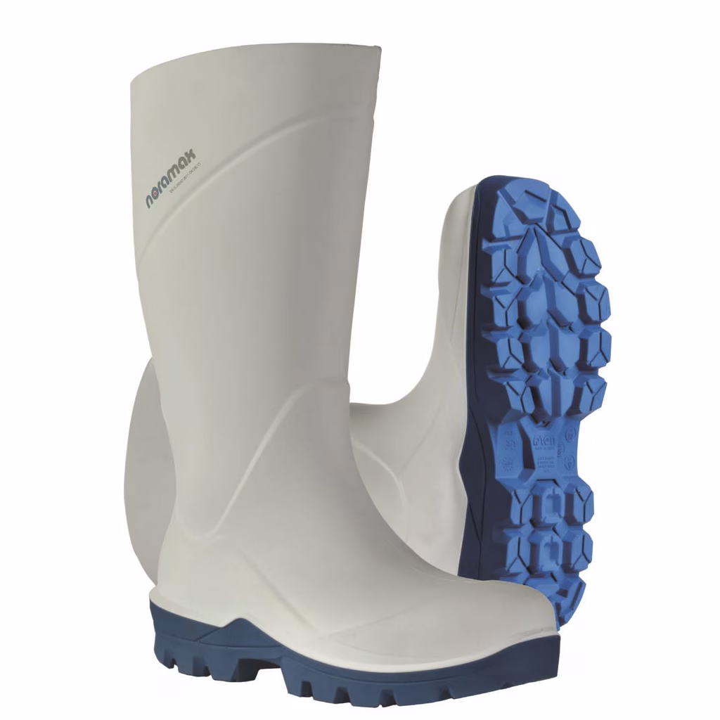 Stivale al ginocchio NORAMAX FOOD S4 in poliuretano per uso professionale nell'industria alimentare, la linea Noramax è stata progettata per soddisfare tutte le esigenze degli utilizzatori - prodotto utilizzando il poliuretano Elastopan (by BASF) che contiene milioni di piccole bolle d'aria che conferiscono sia leggerezza che un'eccellente isolazione termica