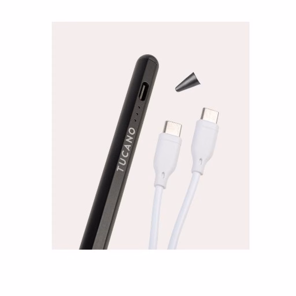 Penna capacitiva attiva progettata per tuti modelli di iPad con tempo di ricarica di 30 minuti e con un'autonomia di 8/10 ore. Dotata di tecnologia palm rejection, che ignora i tocchi involontari del palmo della mano, la Tucano Pencil è sensibile all'inclinazione e non necessita di associazione Bluetooth essendo riconosciuta automaticamente dal dispositivo. Il supporto magnetico integrato, consente di agganciare la Tucano Pencil sul lato esterno dell'iPad (solo nei modelli compatibili). Cavo USB-C per la ricarica e 2 punte di ricambio inclusi nella confezione.