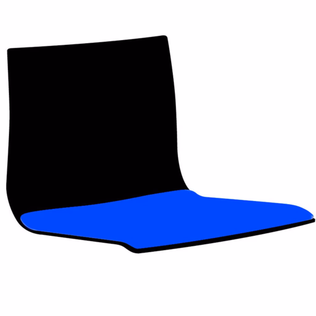 Sedia Monoscocca in tecnopolimero proposta nel colore Bianco (Ral 9016) e Nero (Ral 9005), richiedibile anche in altri 7 colori Ral. Proposta in diverse versioni: con struttura 4 gambe con piedini snodati o slitta (cromata oppure verniciata bianca o nera), nella versione con struttura cromata cantilever inverso per mensa, nella versione sgabello con struttura cromata 4 gambe o slitta, e nella versione girevole su ruote con struttura a ragno cromata su ruote. Tramite codice supplemento è possibile integrare inserto sedile imbottito e rivestito in tessuto ignifugo King (test usura: 100.000 cicli Martindale)