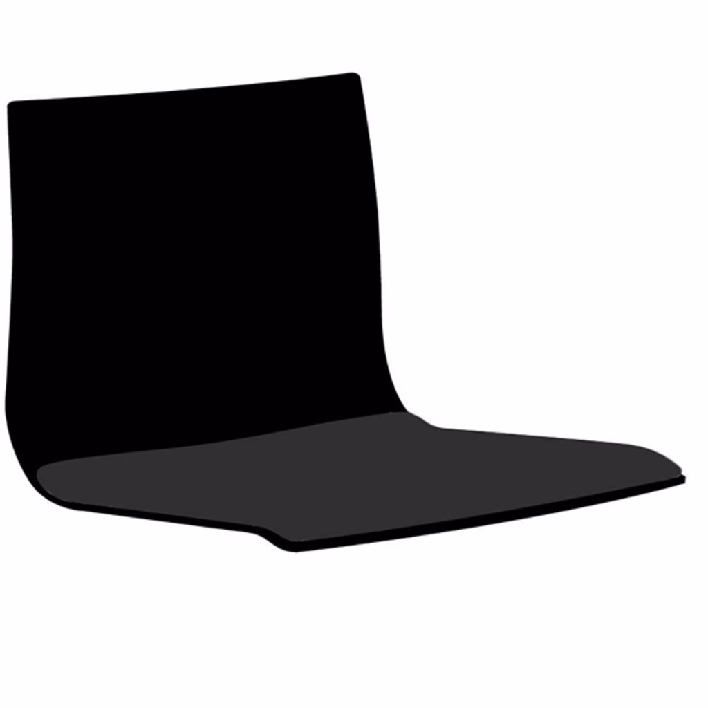 Sedia Monoscocca in tecnopolimero proposta nel colore Bianco (Ral 9016) e Nero (Ral 9005), richiedibile anche in altri 7 colori Ral. Proposta in diverse versioni: con struttura 4 gambe con piedini snodati o slitta (cromata oppure verniciata bianca o nera), nella versione con struttura cromata cantilever inverso per mensa, nella versione sgabello con struttura cromata 4 gambe o slitta, e nella versione girevole su ruote con struttura a ragno cromata su ruote. Tramite codice supplemento è possibile integrare inserto sedile imbottito e rivestito in tessuto ignifugo King (test usura: 100.000 cicli Martindale)