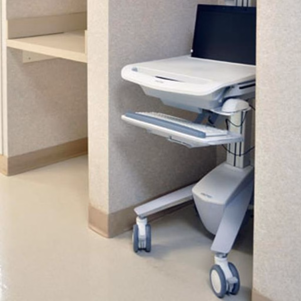 Progettato per permettere di regolare rapidamente l'altezza e scegliere se lavorare seduti o in piedi con un solo movimento, promuovendo il benessere e la produttività del personale sanitario.