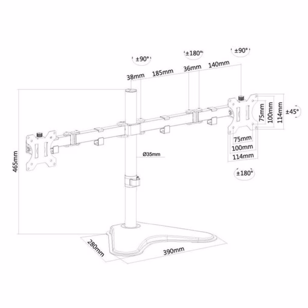 Il supporto FPMA-D550DDBLACK ha tre punti di articolazione ed è adatto a schermi fino a 32" con una capacità massima di trasporto di 16 kg (8 Kg per ogni schermo). Questo prodotto è adatto per schermi con fori VESA modello 75x75 o 100x100 mm. Per una diversa (più grande) foratura, si può combinare con una delle nostre piastre di adattamento VESA.