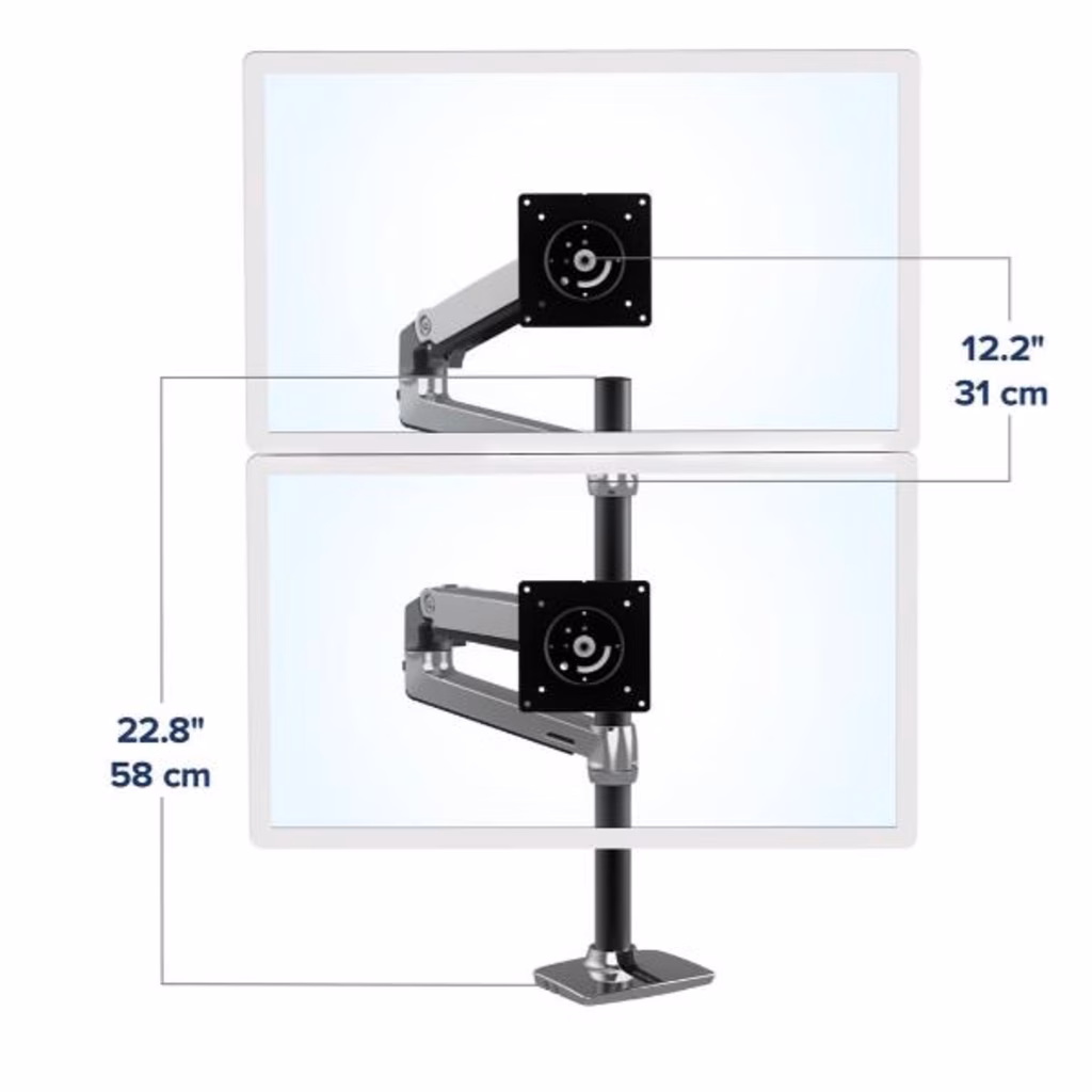 BRACCIO PER DUE MONITOR SOVRAPPOSTI LX-PALO ALTO (ALLUMINIO)