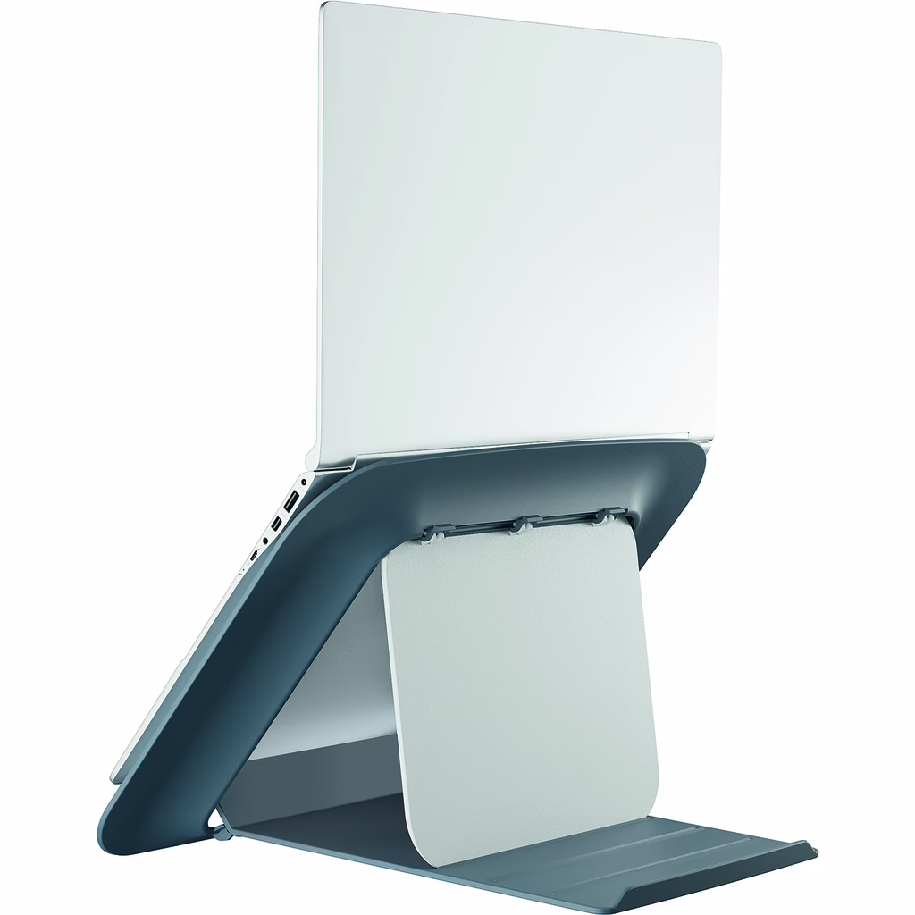 Supporto ergonomico per laptop per il massimo comfort, con l'80% di plastica riciclata post-consumo. Facile da regolare alla giusta altezza. Design moderno e minimalista per non rinunciare al movimento.