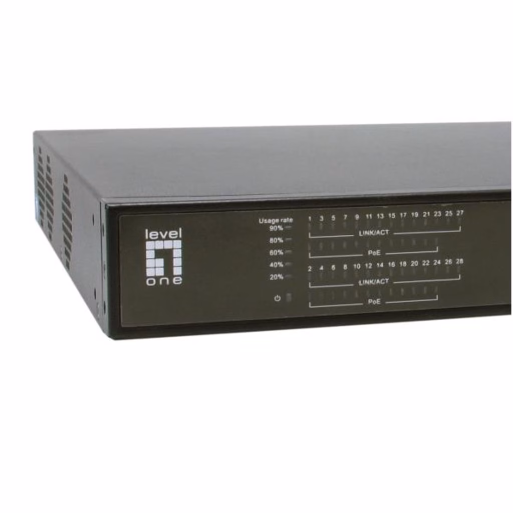 Il GEP-2821 è uno switch PoE non gestito a 28 porte Gigabit di ultima generazione di LevelOne, con 2 porte RJ45 Gigabit e 2 porte SFP Gigabit Uplink. offre inoltre una potente configurazione con pulsanti DIP per la modalità VLAN e la modalità predefinita. Switch che offre un aggiornamento ad alte prestazioni, a basso costo, facile da usare e senza soluzione di continuità per potenziare la rete a 1000 Mbps. Aumenta la velocità della dorsale di rete fino a 56 Gbps e porta la velocità Gigabit fino ai computer.