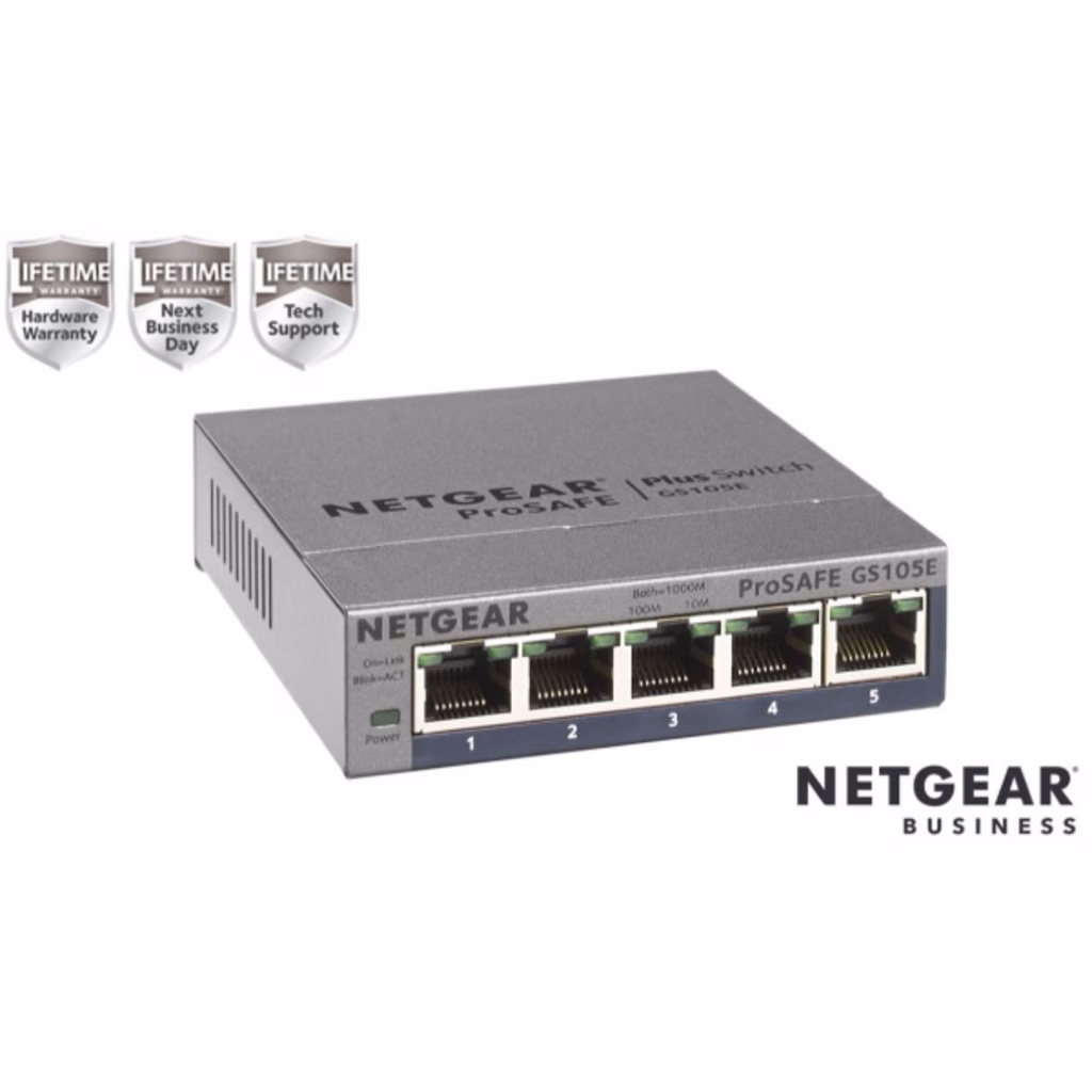 NETGEAR GS105E Switch ProSAFE Smart Managed Plus 5 porte Gigabit,Garanzia a vita+NBD