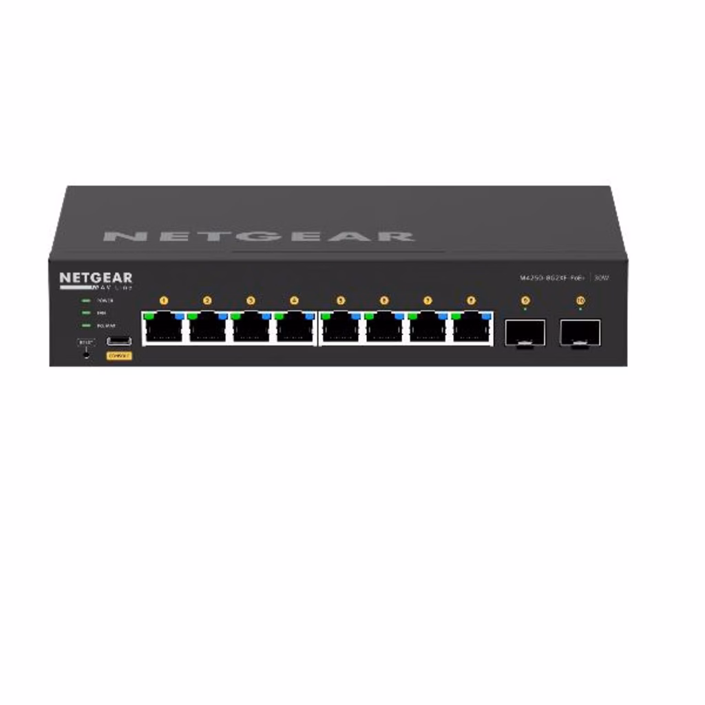 Potenti switch AV Line M4250, ora in formato desktop. Semplifica le tue implementazioni multicast AV con NETGEAR IGMP Plus per funzionalità pronte all'uso per sale conferenze, studi mobili e di più. La configurazione multi-switch automatica e le configurazioni basate sul profilo rendono l'installazione un gioco da ragazzi concentrarsi su parti dell'installazione.