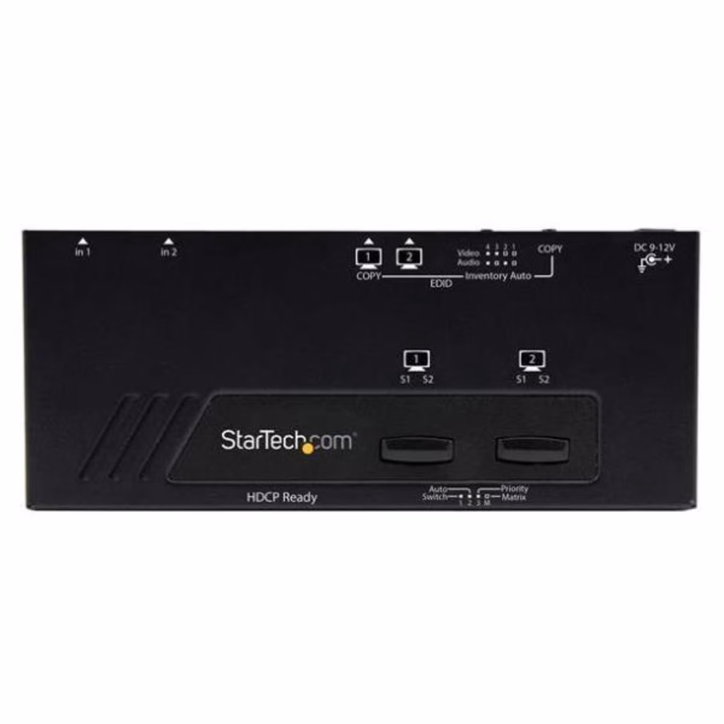 Lo switch matrice HDMI 2x2 VS222HDQ consente di risparmiare tempo ed evitare problemi grazie alla commutazione automatica tra le sorgenti audio/video HDMI. Questo switch matrice HDMI di facile utilizzo assicura una transizione senza problemi durante la commutazione tra le sorgenti video e i display grazie alla funzione di copia EDID che mantiene la risoluzione video.