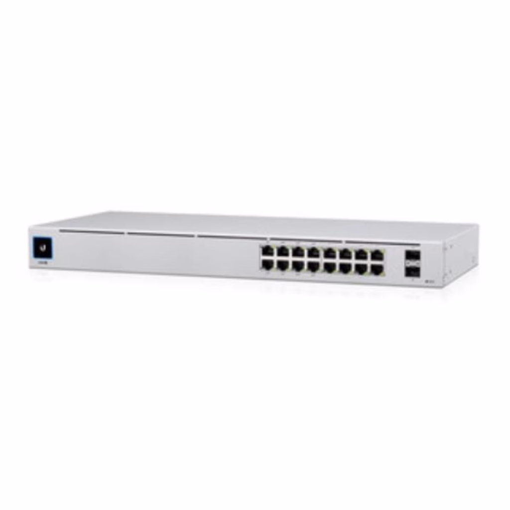 Il modello USW-16-POE-EU è uno switch layer 2 con 16 porte Gigabit , delle quali 8 porte sono POE+ 802.3at , e 2 porte SFP.