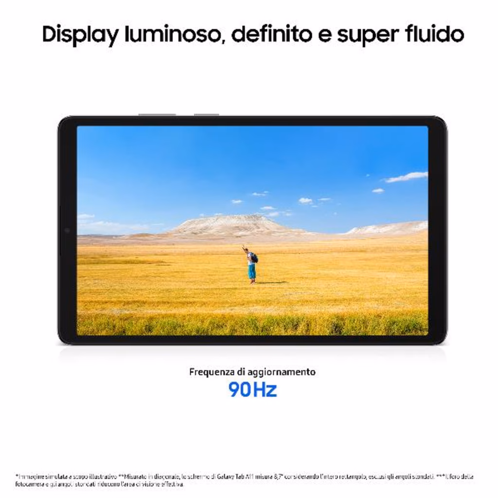 Galaxy Tab A11 unisce design elegante, display fluido da 90 Hz, prestazioni potenti e audio Dolby immersivo. Con fotocamera frontale da 5 MP e memoria espandibile fino a 2 TB, è perfetto per intrattenimento, lavoro e videochiamate. Stile e funzionalità in un unico tablet.