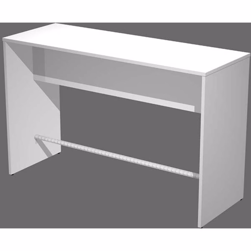 Tavolo alto per bar, ristoranti, bistrot, sale accoglienza. Top e fianchi in solido spessore 25 mm. Materiale in truciolare nobilitato melaminico antigraffio ed antiriflesso. Versione L 160 P70 H105 cm. Fornito di comoda barra poggiapiedi in metallo antiscivolamento. Piedini regolabili. Piano con bordo in spessore antiurto.