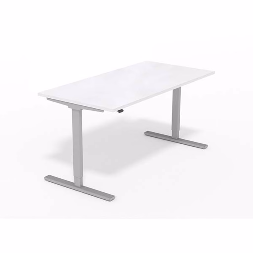 Tavolo elettrico telescopico regolabile in altezza. Desktop in melaminico bilaminato sp. 25 mm con bordo antiurto in ABS 2 mm. Gambe a T in metallo telescopiche a due stadi con comando elettrico sottopiano. Portata massima 50 Kg statici. Dimensioni in cm 180 x 80 x 70/120h cm. Colori: bianco con gambe metalliche grigio alluminio. I VANTAGGI DI UN TAVOLO REGOLABILE IN ALTEZZA I tavoli regolabili in altezza sono stati concepiti per far fronte alle moderne esigenze di flessibilità, dinamicità ed ergonomia. Le colonne di sollevamento elettrico sono affidabili e veloci ed offrono unelegante e silenziosa regolazione. Grazie ai tavoli telescopici è possibile condividere la propria postazione di lavoro con altre persone regolando di volta in volta laltezza in funzione delle singole esigenze. Chi preferisce restare in piedi durante una presentazione o una conferenza non ha che da premere un tasto. Una scrivania regolabile in altezza consente di scegliere la posizione di lavoro più consona al proprio corpo, eliminando il disagio di una postura scorretta dovuta al poco spazio per le gambe o ad unaltezza troppo alta o troppo bassa di monitor e tastiere.