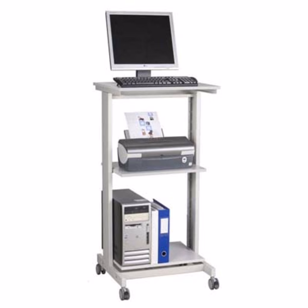 Tavolo portacomputer, 3 ripiani 4 ruote di cui 2 bloccabili - Con piano portastampante e piano porta CPU - Altezza 1180mm, larghezza 600mm, profondità 500mm.