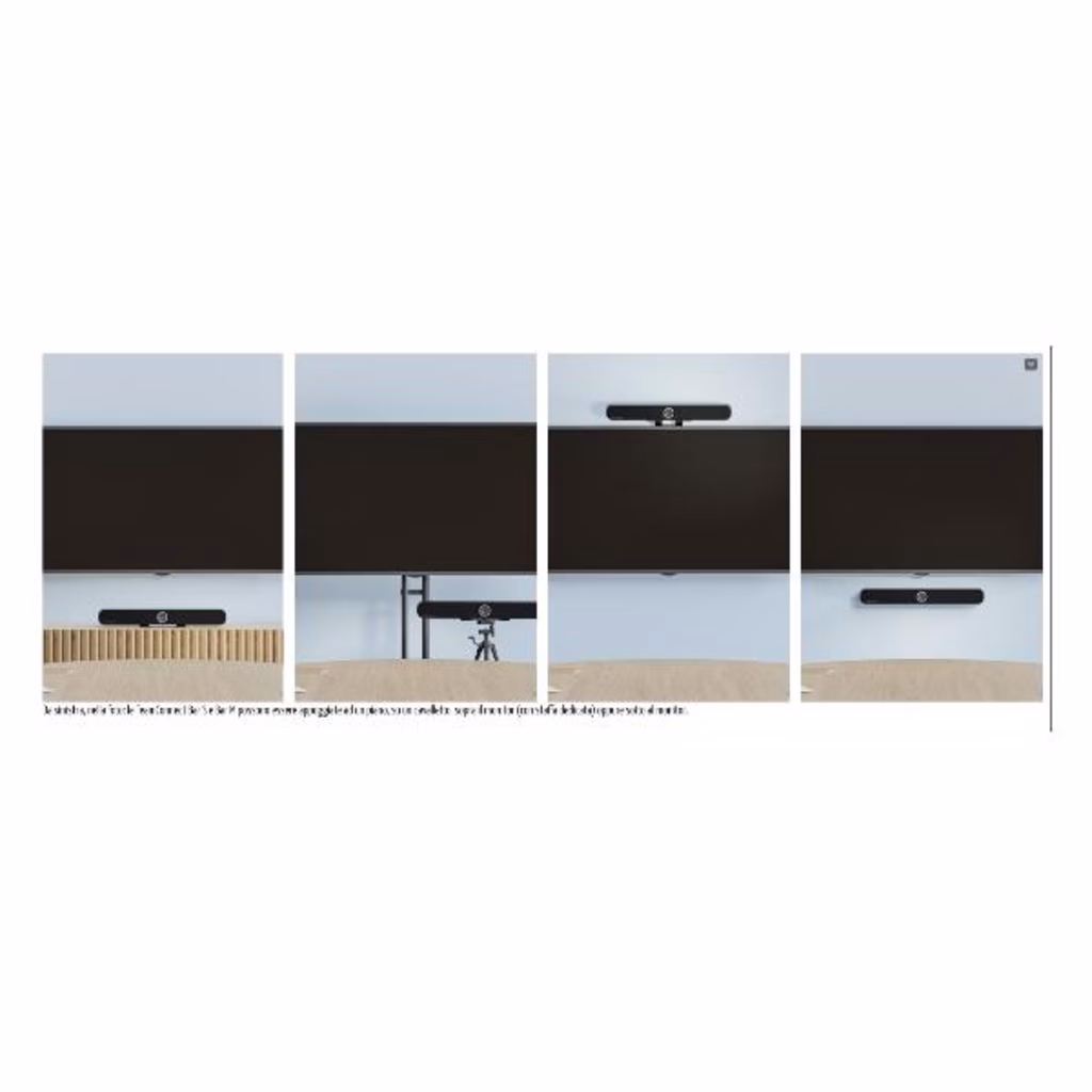 Le TeamConnect Bar S e Bar M possono essere appoggiate ad un piano, su un cavalletto, sopra il monitor (con staffa dedicata) oppure sotto al monitor.