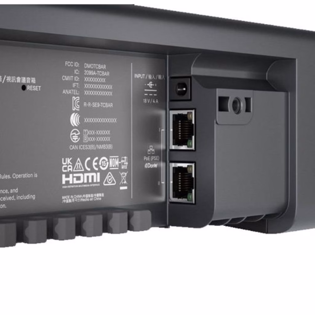 Videobar all-in-one Plug&Play, certificata Microsoft Teams, Zoom, ClickShare, DANTE, particolarmente adatta per garantire un'alta intelligibilità della videoconferenza.