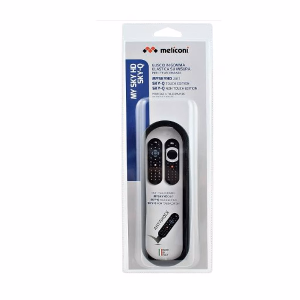 Un successo non solo italiano che si rinnova costantemente, per adattarsi alle nuove tecnologie e alle caratteristiche sempre nuove dei telecomandi più recenti: con più di 27 milioni di pezzi venduti dal lancio dei primi modelli, il Guscio TV® MELICONI continua ad essere un prodotto richiestissimo nei punti vendita, rispondendo in modo eccellente al bisogno di sicurezza di ogni consumatore.Il guscio universale in gomma elastica per telecomando protegge il telecomando in caso di urti e cadute. Il Guscio 8 è stato realizzato su misura per i Telecomandi Sky Q (Sky Q, Sky Q touch, Sky Q con comando vocale al centro) e SKY Glass.