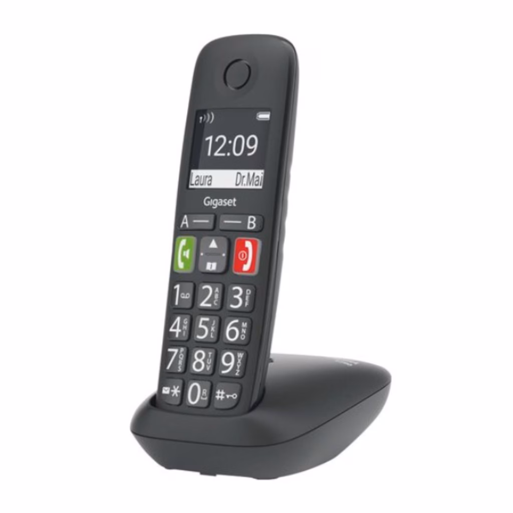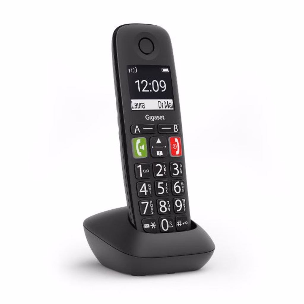 Chiama in semplicità tutti i giorniGrazie alla forma ergonomica e alla tastiera illuminata con i tasti grandi, Gigaset E290 rende l'utilizzo del telefono il più confortevole possibile. Inoltre è possibile salvare due contatti particolarmente importanti, nei due tasti di chiamata rapida A e B. Utili anche in caso di emergenza. La rubrica può contenere fino a 150 contatti e i tasti della tastiera da 2 a 9 sono programmabili per le chiamate dirette di 8 contatti preferiti. In questo modo sono raggiungibili semplicemente premendo un tasto. E' possibile salvare fino a 32 numeri in una lista nera, black list, per bloccare le chiamate da questi numeri. Inoltre il telefono garantisce la protezione da chiamate anonime, chi chiama con numero anonimo viene bloccato e puoi silenziare la suoneria in fasce orarie prestabilite. Così sarai tu a scegliere chi ti può chiamare e non essere disturbato dai chiamanti fastidiosi.