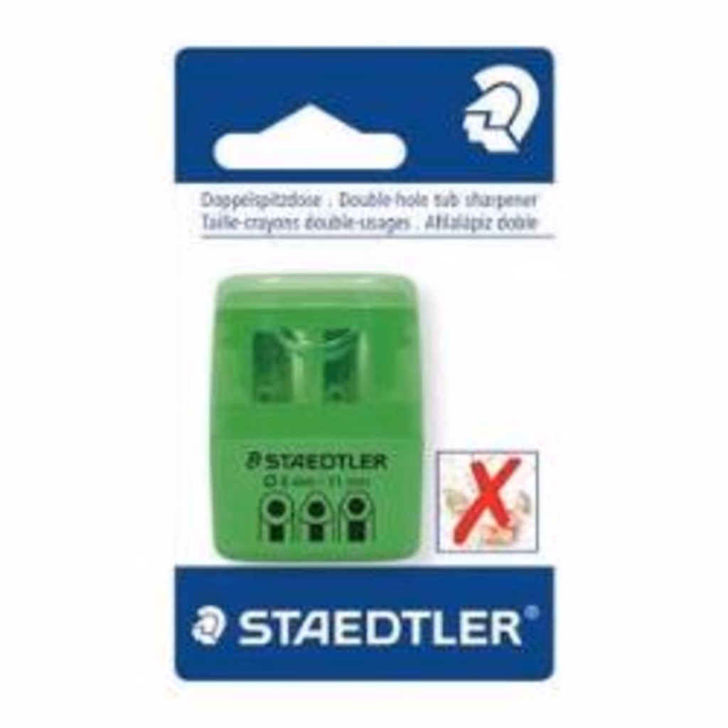 Temperamatite  con contenitore per trucioli triangolare, 2 fori, per diametro matite fino a 11 mm.