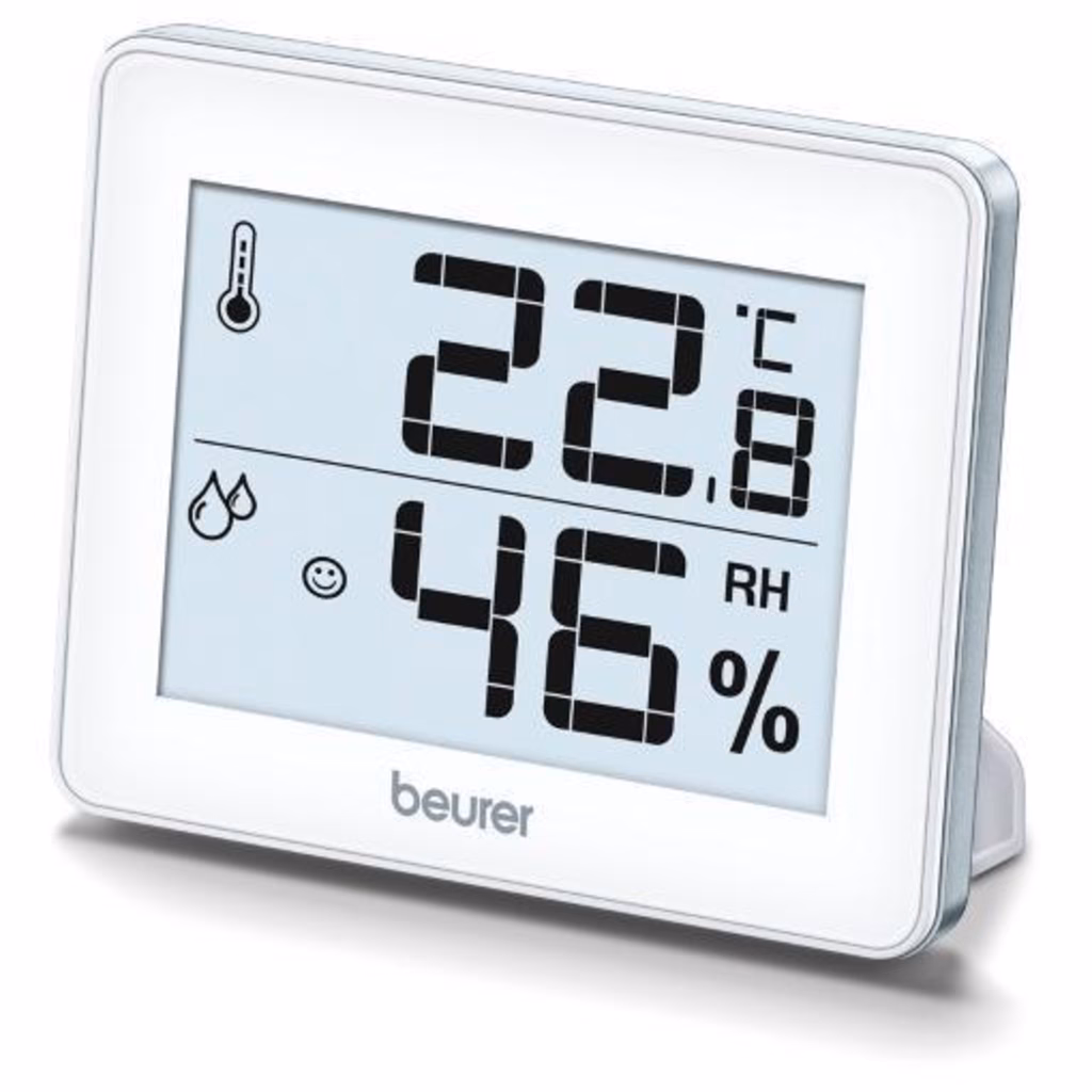 Con il termoigrometro HM 16 di Beurer hai sempre sott'occhio l'aria ambiente. Ti mostra la temperatura e l'umidità dell'aria e classifica i valori con un indicazione smiley.