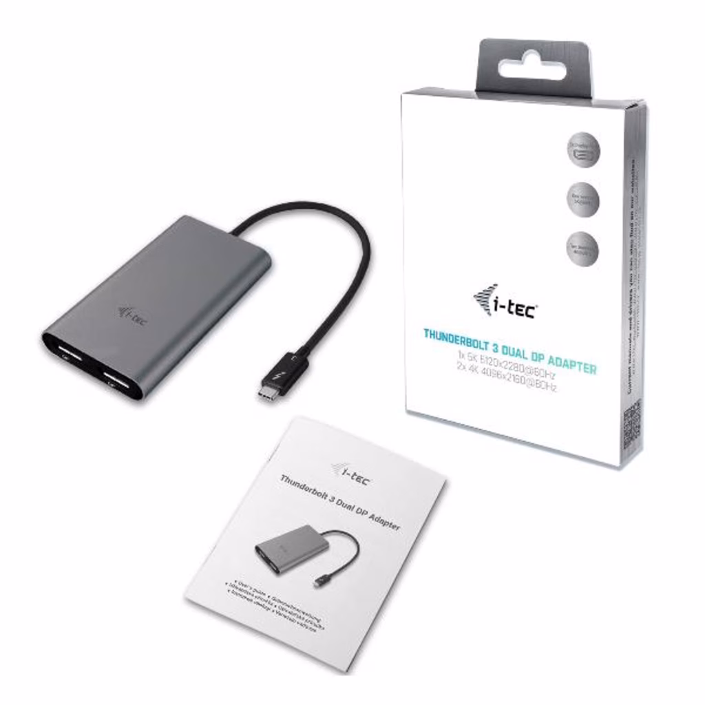 i-tec Video adattatore Thunderbolt 3 Dual Display Port per Thunderbolt 3, MacOS e Windows, notebook e tablet, supporta 1 monitor/TV 5K, 60 Hz o 2 monitor/TV 4K, 60 Hz