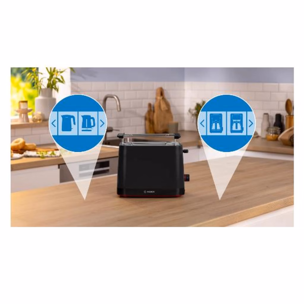 Lo sai, a volte la colazione può essere frenetica e potrebbe capitarti di dimenticare di spegnere il tostapane. Scegli Bosch e rilassati! Il nostro tostapane, infatti, si spegne automaticamente dopo un certo periodo di tempo.