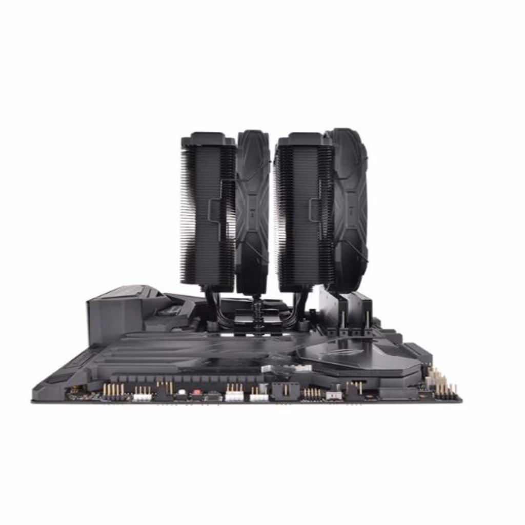 TOUGHAIR 710 Black is designed for the latest Intel and AMD CPUs, which needs the best possible cooling solution, so we doubled everything and came up with the Dual-Tower Dual Fan Design; it allows the two 140mm fans to push air cooling performance even further, exceeding all previous TOUGHAIR series models.