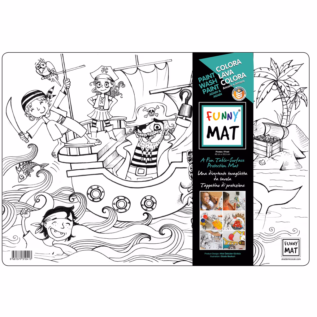 Tovaglietta trasparente AKADEMI COCUK KIT FUNNY MAT - pirati, unicorno, cuccioli, dinosauri