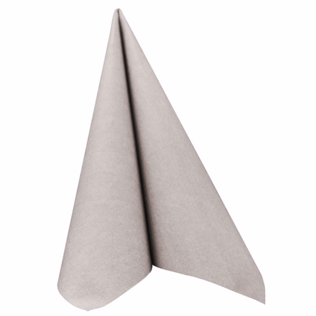 Tovagliolo di carta monouso in AIRLAID, materiale di derivazione naturale in cui le fibre di cellulosa sono fissate tenacemente da un bagno di lattice e la cui resistenza alla trazione è superiore alla cellulosa tradizionale - Il materiale si presenta alla vista liscio o goffrato, è morbido al tatto ed estramamente assorbente - lo smaltimento corretto è nella frazione secca della differenziata.