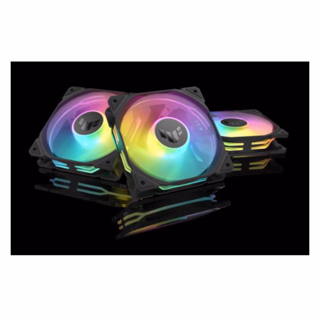 La ventola per chassis TUF Gaming TR120 ARGB a pale invertite è caratterizzata da un'elevata pressione statica e da prestazioni di flusso d'aria con schemi di illuminazione personalizzati.