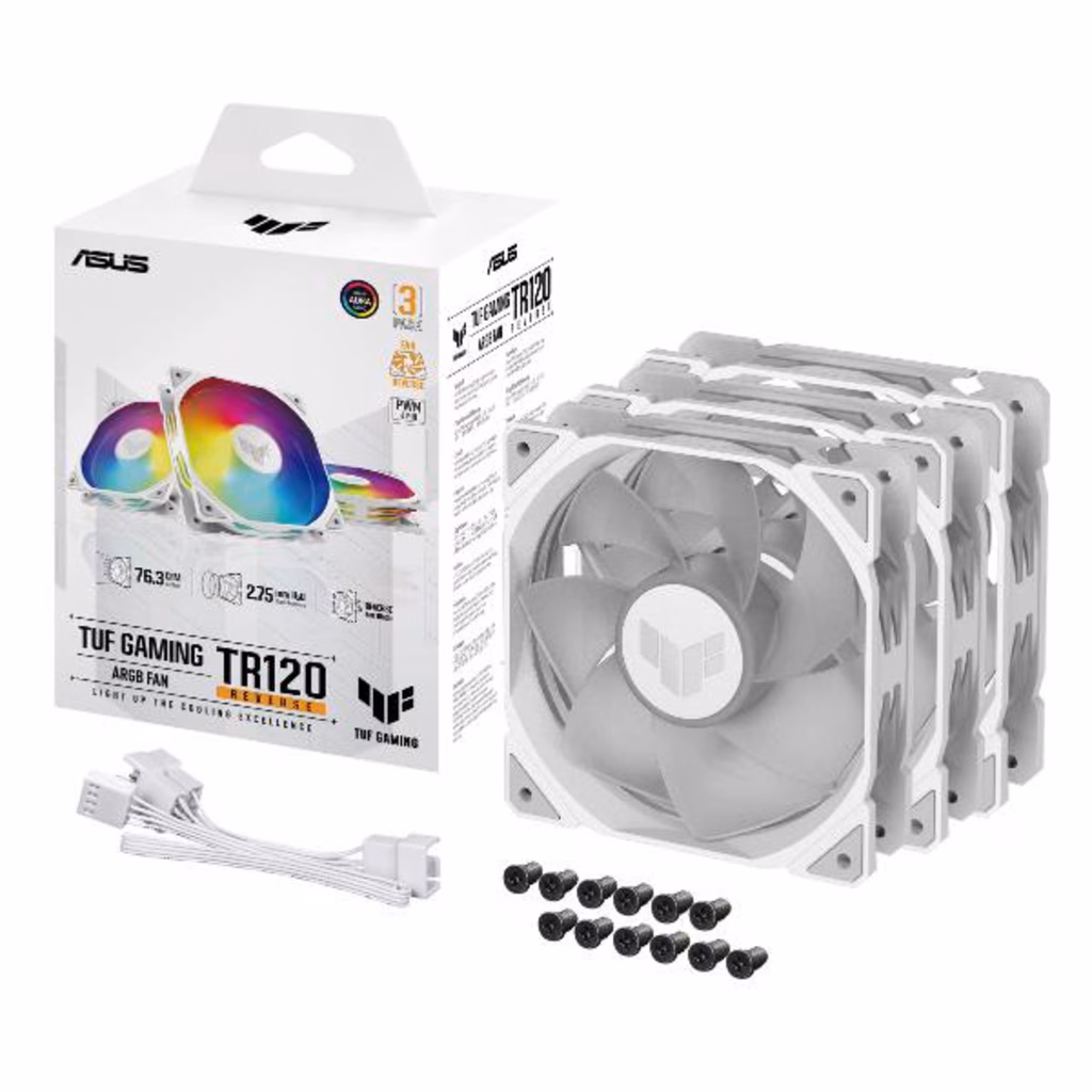 La ventola per chassis TUF Gaming TR120 ARGB è caratterizzata da un'elevata pressione statica e da un flusso d'aria con illuminazione personalizzata.