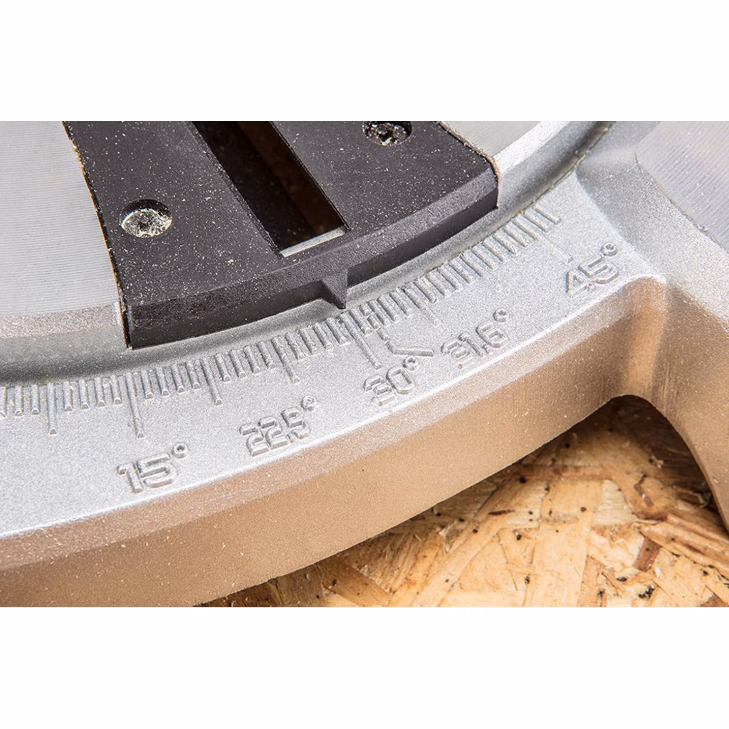 La troncatrice VERTO 1500 W è progettata per il taglio preciso di pezzi di legno, materiali simili al legno e sezioni di alluminio. È dotato di lama di taglio con diametro di 210 mm e puntatore laser per un taglio preciso e funzione per la configurazione rapida di angoli di taglio comuni. L'intervallo dell'angolo di taglio inclinato e inclinato è compreso tra 0° e 45°. Lo strumento consente la sostituzione individuale delle spazzole di carbone dall'esterno. Il set viene fornito con chiave esagonale, morsetto verticale, prolunghe per tavolo scorrevole (3 pezzi). La conformità con gli standard di sicurezza europei è confermata dal certificato CE.